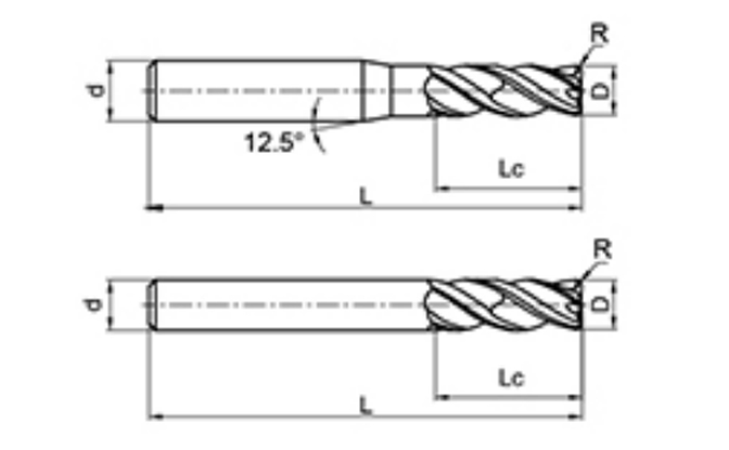 | না. | ব্যাস ডি | আর কোণ আর | বাঁশির দৈর্ঘ্য এলc | সামগ্রিক দৈর্ঘ্য L | শাঁক দিয়া d | ব্লেড কাউন্ট চ |