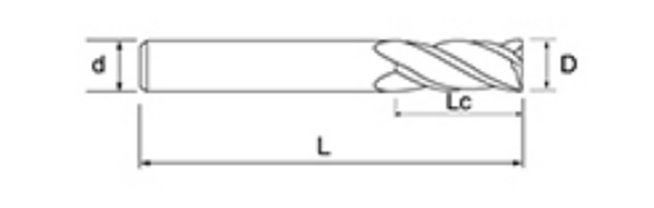 | না. | ব্যাস ডি | বাঁশির দৈর্ঘ্য এলc | সামগ্রিক দৈর্ঘ্য L | শাঁক দিয়া d | ব্লেড কাউন্ট চ |