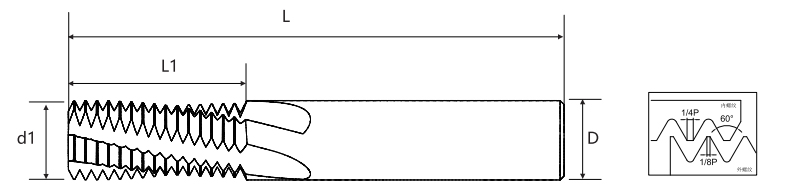| পিচ | মোটা দাঁত ইউএনসি | সূক্ষ্ম দাঁত ইউএনএফ | আল্ট্রা ফাইন দাঁত ইউএনইএফ | ব্লেড ব্যাস d1 | কার্যকর ফলক দৈর্ঘ্য এল1 | ব্যাস হ্যান্ডেল ডি | সামগ্রিক দৈর্ঘ্য L | ব্লেড কাউন্ট | নীচের গর্ত ব্যাস |